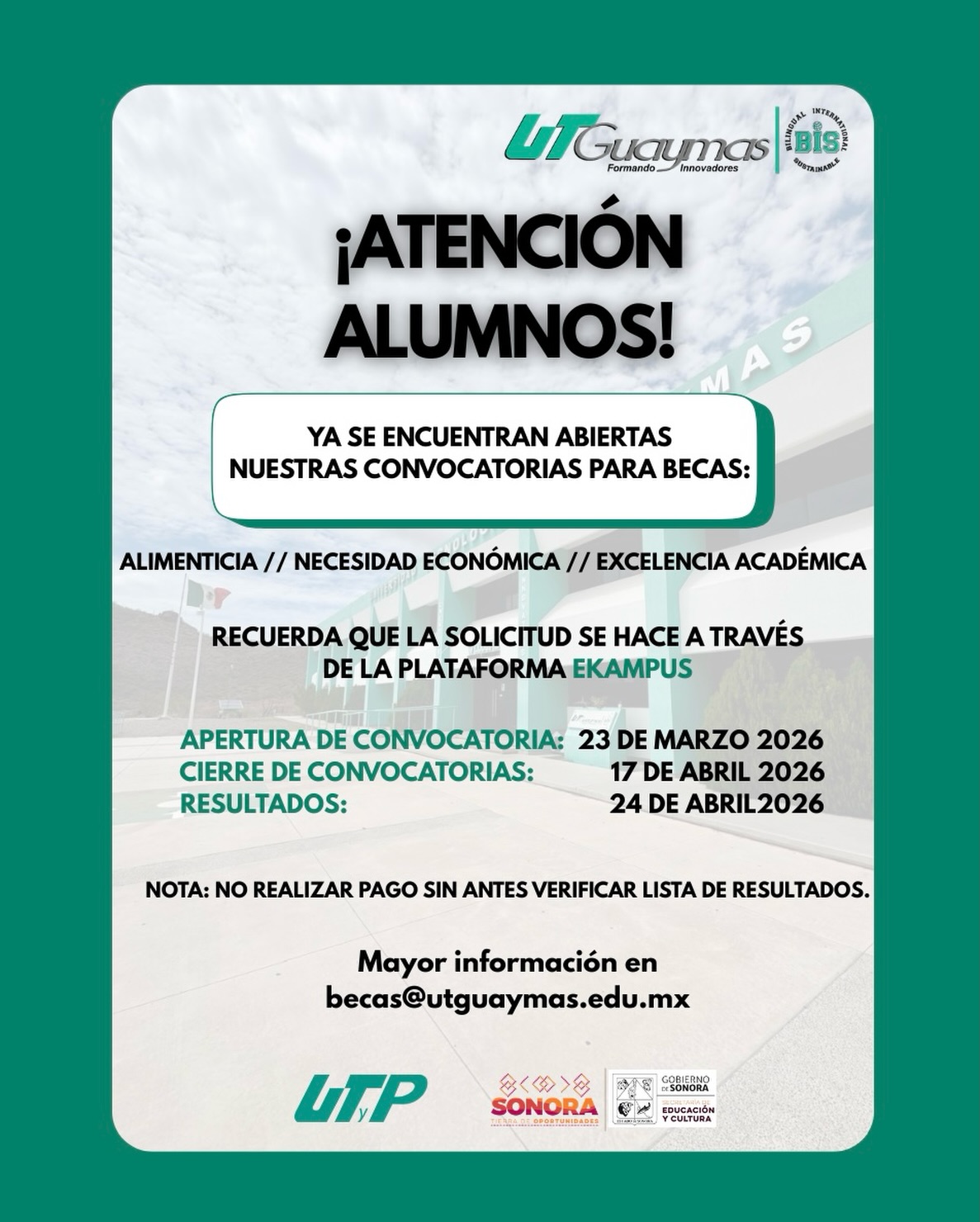 ¡Atención alumnos UTG!